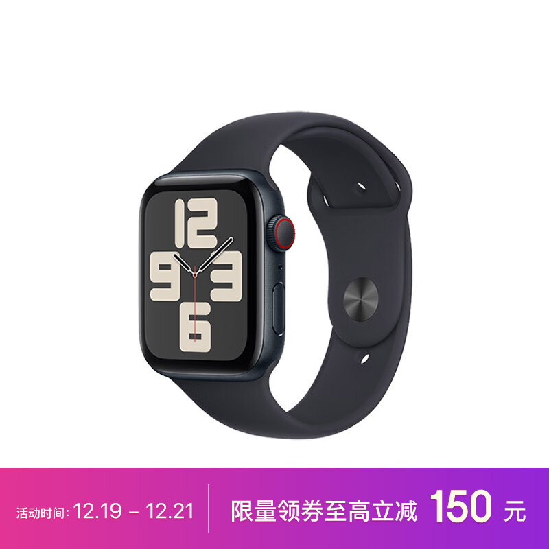 Apple Watch SE 2023款智能手表GPS + 蜂窝款44毫米午夜色铝金属表壳午夜色运动型表带M/L 健康手表MRH93CH/A价格:2599.00元!