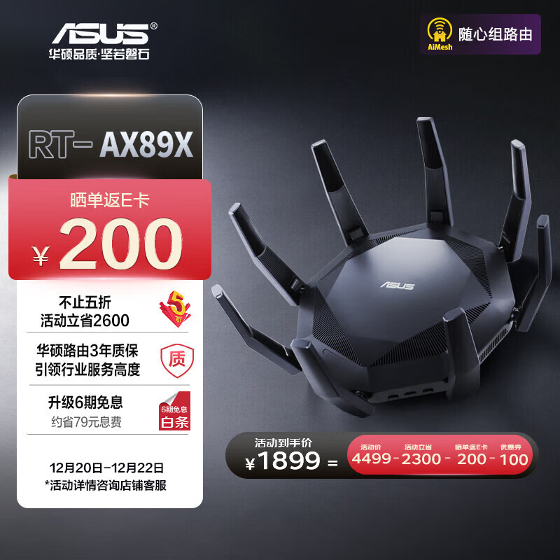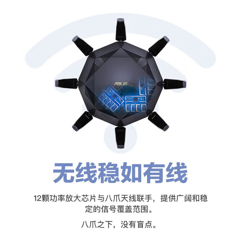 华硕(ASUS)RT-AX89X高通四核/电竞游戏路由器/双10G口/全千兆WiFi6路由器/家长管理路由价格:2199.00元!
