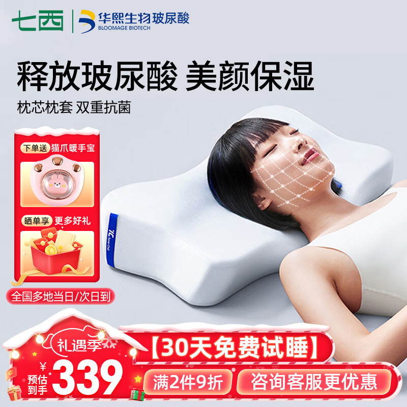七西(7C)玻尿酸记忆棉美妍枕睡眠枕蝶形颈椎枕头释压慢回弹无压枕芯 玻尿酸美妍枕宁静蓝价格:499.00元!