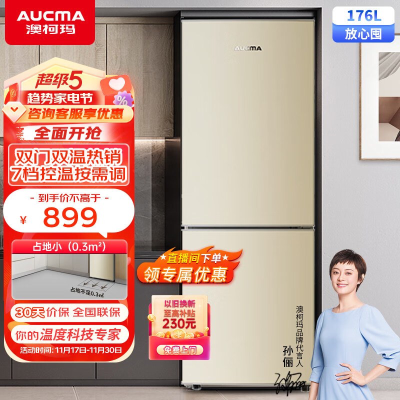 澳柯玛(AUCMA)冰箱家用租房用双开门电冰箱双门小冰箱二门小型冰箱节能低噪176升 以旧换新 BCD-176NE价格:949.00元!