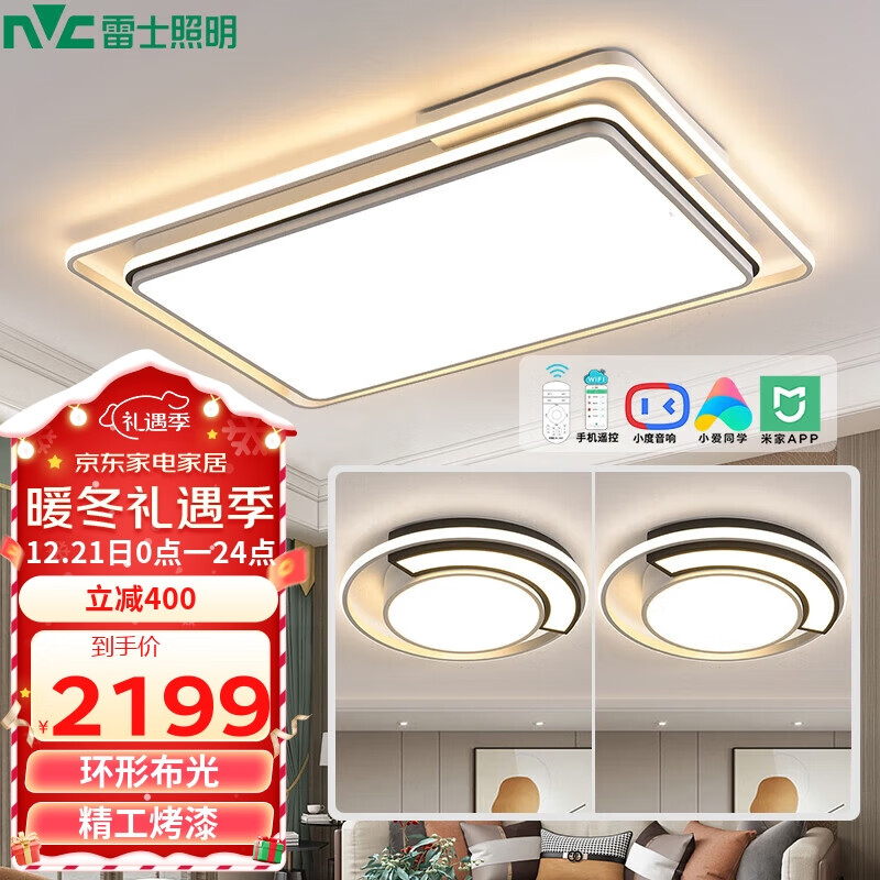 雷士照明(NVC)LED吸顶灯客厅灯北欧现代简约卧室书房灯饰灯具套餐二室一厅A价格:2599.00元!