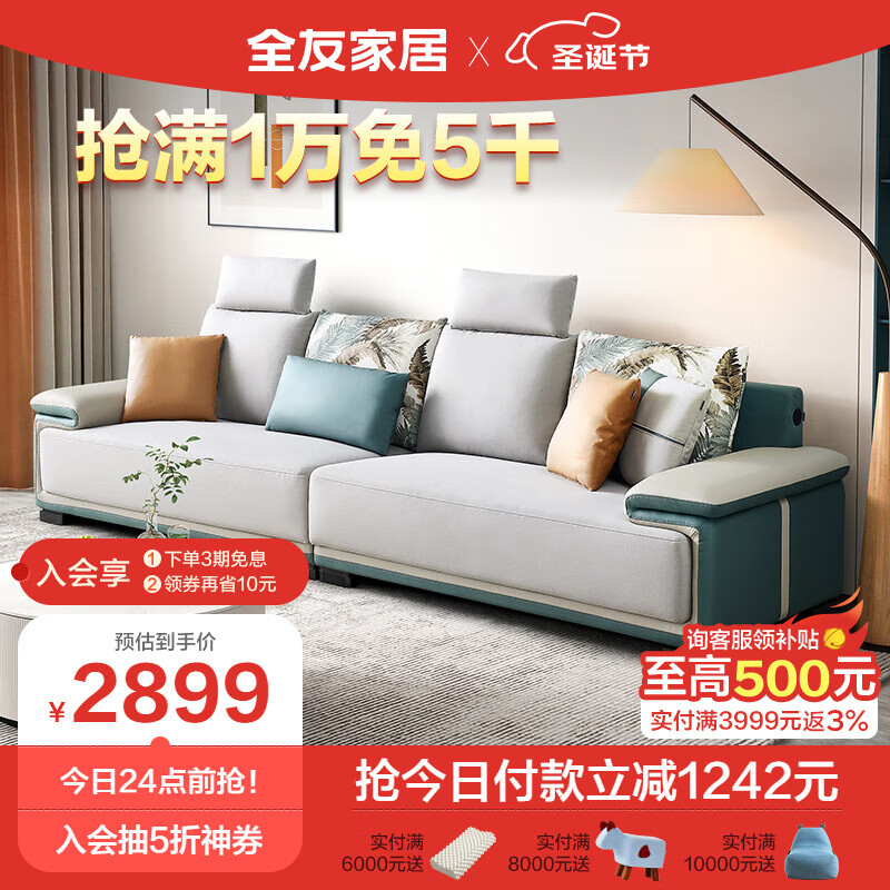 全友家居 沙发现代简约皮布沙发可拆洗科技布艺沙发客厅家具102702价格:4141.00元!