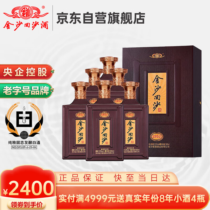 金沙回沙酒 纪年酒1951 酱香型白酒 53度 500ml*6瓶 整箱装 纯粮食酒价格:2310.00元!