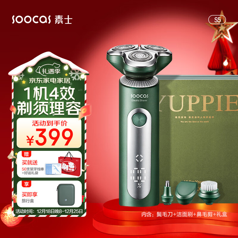 素士SOOCAS 电动剃须刀充电式 男士刮胡刀 S5理想型礼盒 圣诞节 生日礼物送老公送男友价格:420.00元!