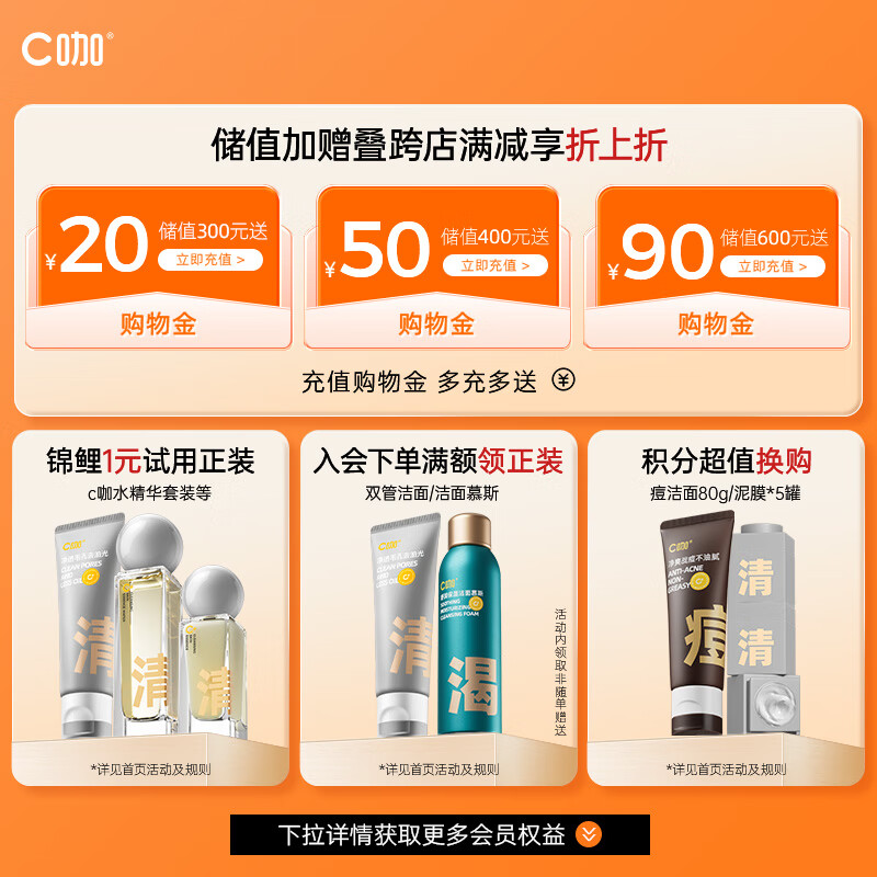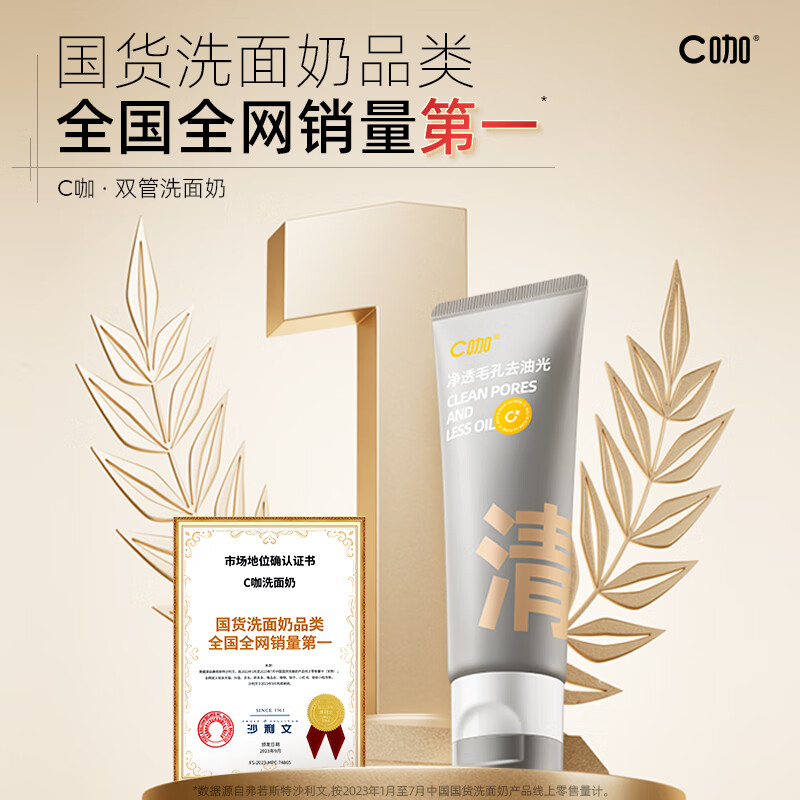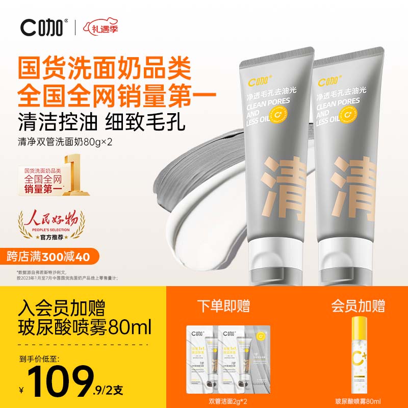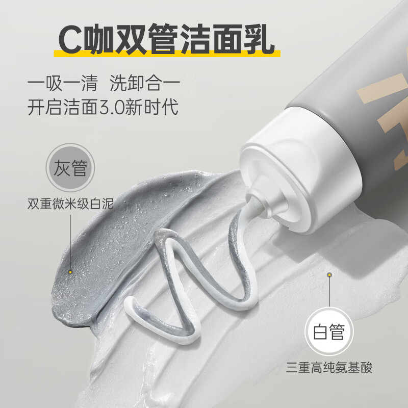 C咖氨基酸白泥清透净肤双管洗面奶清洁控油平衡保湿80g*2支价格:129.90元!