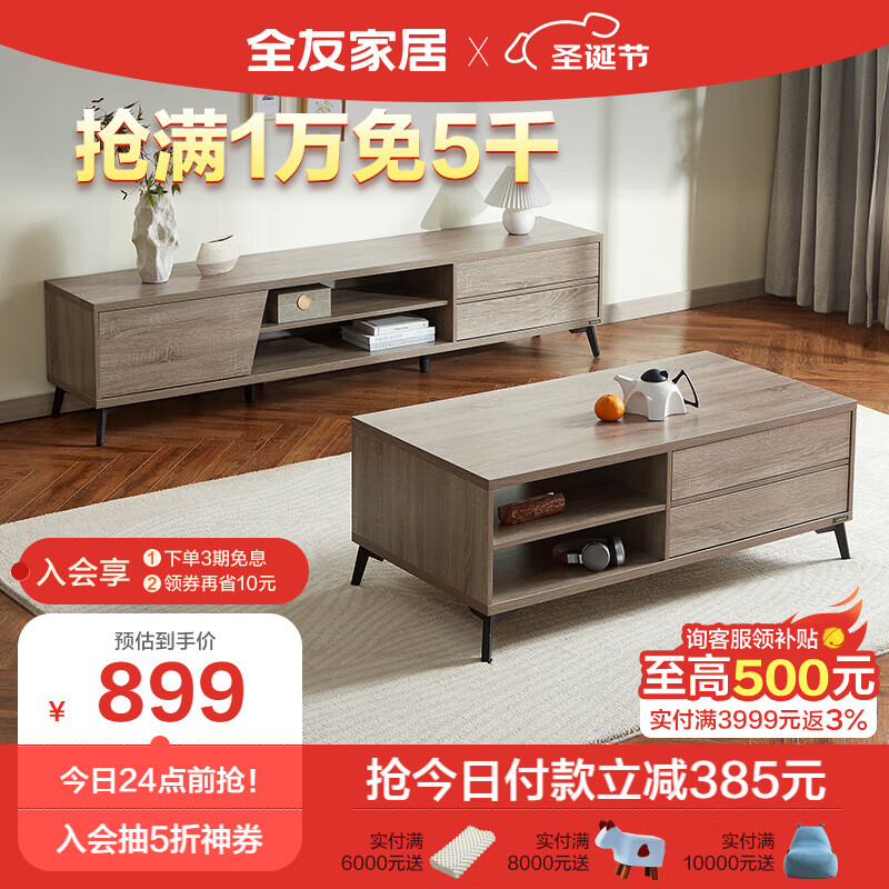 全友家居 现代简约茶几电视柜 木纹多区储物收纳客厅家具670103A价格:1284.00元!