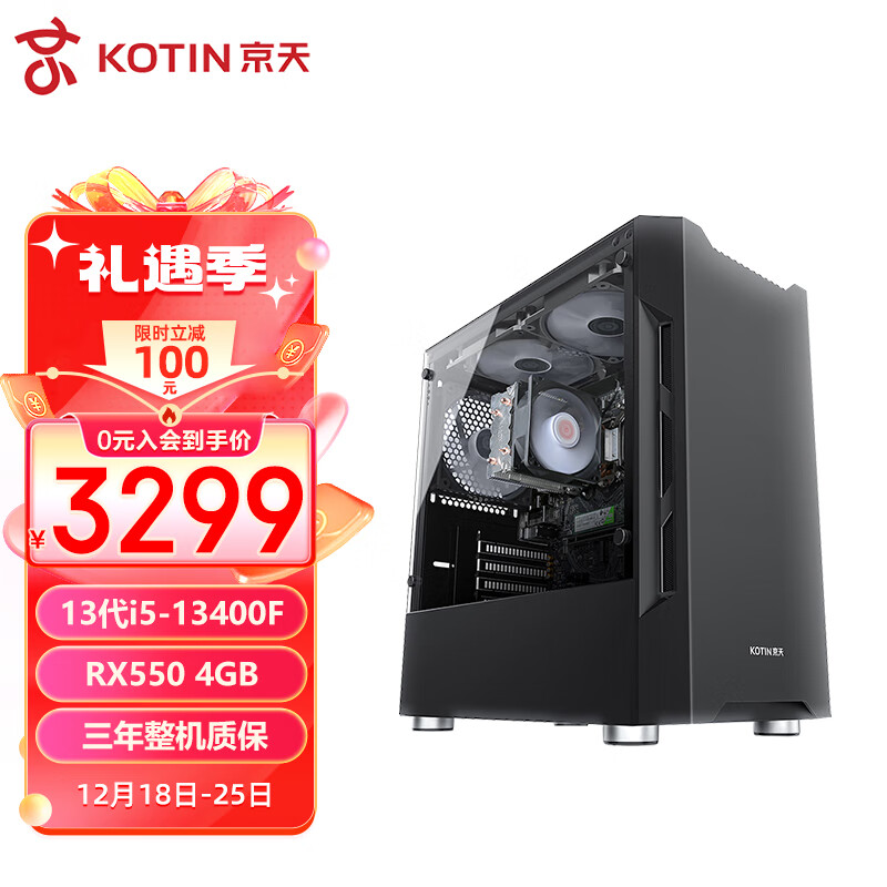 京天 Blitz 708 i5-13400F/4G独显/16G/512G固态+2TB/WiFi 蓝牙/商务键鼠/家用办公游戏组装电脑台式主机UPC价格:3499.00元!