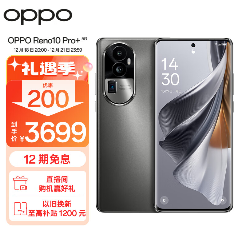 OPPO Reno10 Pro+ 16GB+256GB 月海黑 骁龙 8+ 旗舰芯片 旗舰级超光影潜望长焦 100W超级闪充 超大内存5G手机价格:3899.00元!