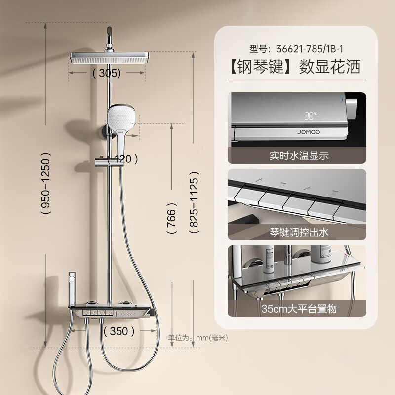 九牧(JOMOO)琴键数显大置物喷枪淋浴器36621-785/1B-1价格:2099.00元!