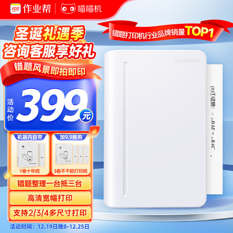 作业帮喵喵机错题打印机C1S高清超宽幅4英寸错题整理神器学生迷你便携口袋照片热敏打印机家用 白价格:399.00元!