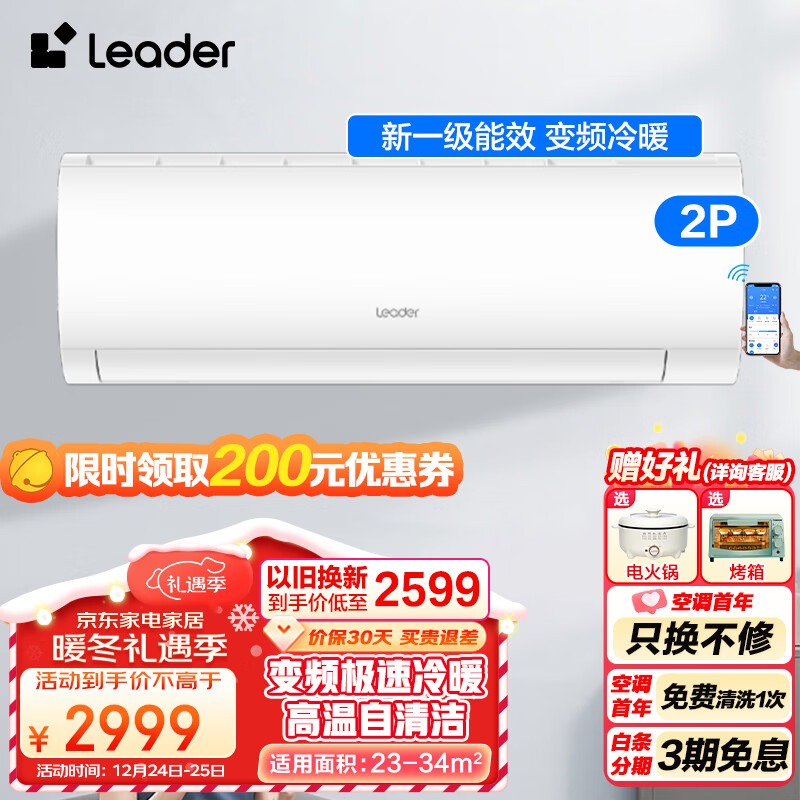 海尔(Haier)空调智家出品大2匹挂机统帅空调家用新一级能效变频节能冷暖壁挂式自清洁卧室18MDA81TU1[家电]价格:3199.00元!