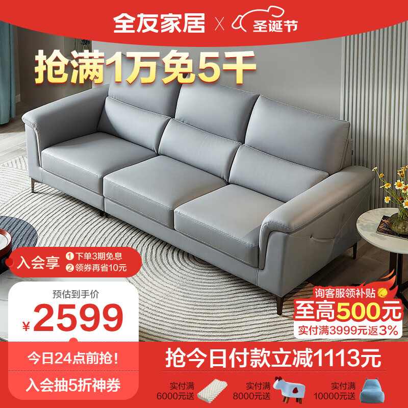 全友家居 沙发客厅简约科技布沙发小户型舒适皮感沙发家具组合102729A价格:3712.00元!