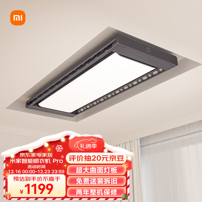 米家智能晾衣机Pro 电动晾衣架 超薄机身嵌入隐藏 无线遥控升降 小米价格:1199.00元!