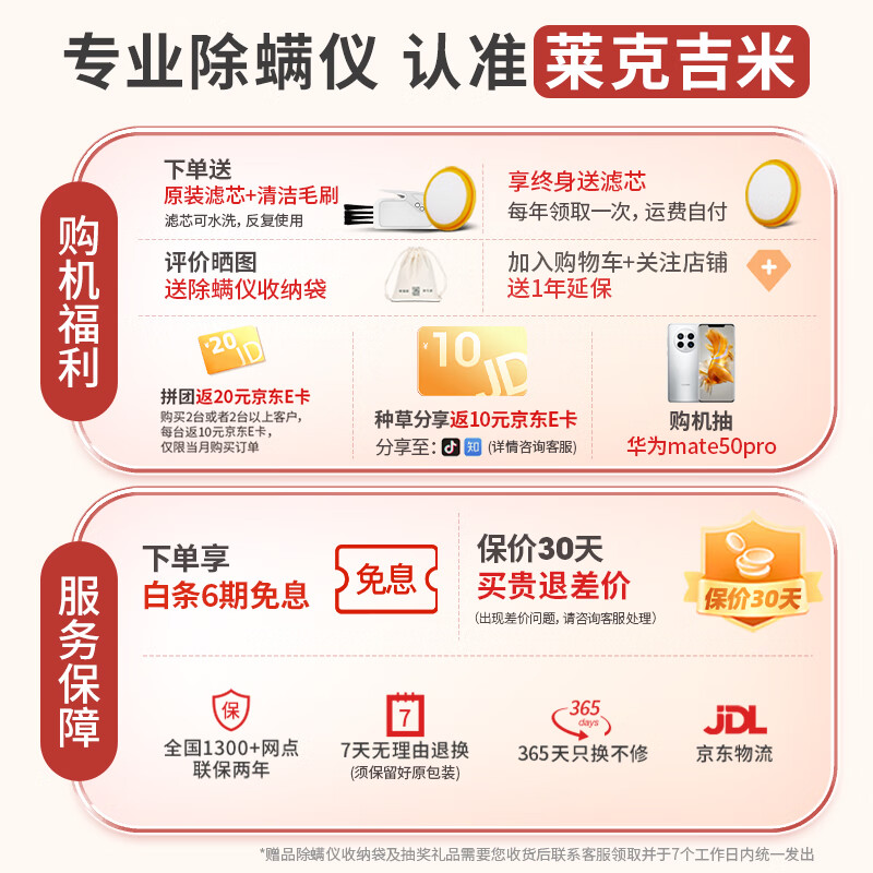 莱克吉米除螨吸尘神器WB73家用床上小型手持超声波紫外线杀菌去螨虫大吸力除湿除螨仪一体机【品红色】价格:949.00元!