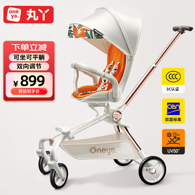 丸丫T6-2遛娃神器婴儿推车0-3岁可坐可躺轻便折叠宝宝溜娃 夏日橙2代价格:1219.00元!