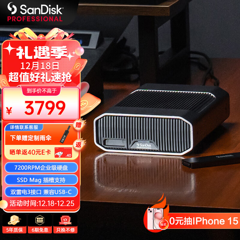 闪迪大师极客 致捷 6TB 企业级桌面移动硬盘 机械硬盘 雷电3兼容USB Type-C 3.5英寸大容量 读取速度250MB/S价格:3799.00元!