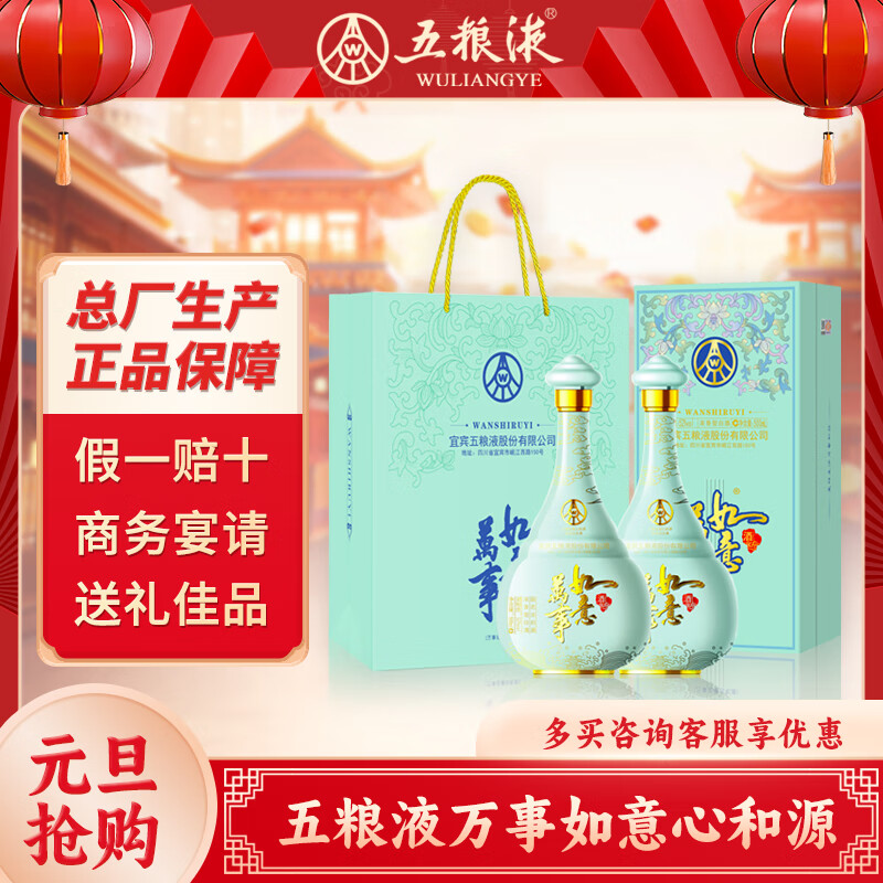 五粮液股份 送礼佳品 万事如意心和源 固态法纯粮食白酒52度500ml*2瓶装价格:888.00元!