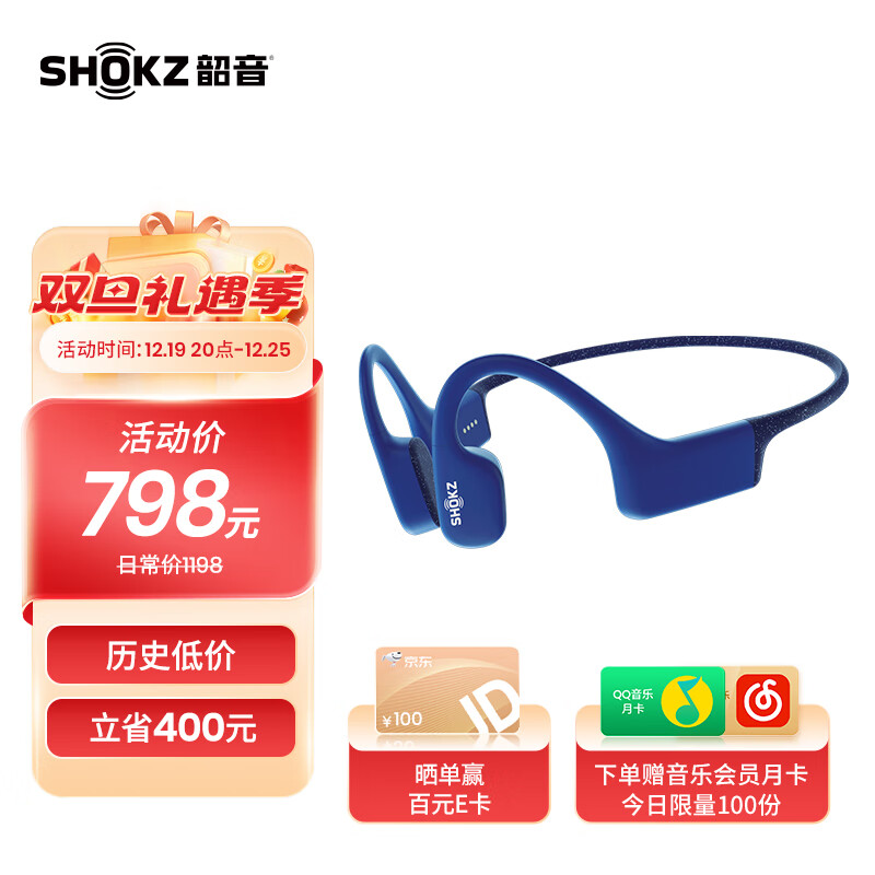 韶音(SHOKZ)OpenSwim骨传导开放式MP3播放器 不入耳式运动游泳跑步专用 IP68防水S700 星空蓝价格:798.00元!