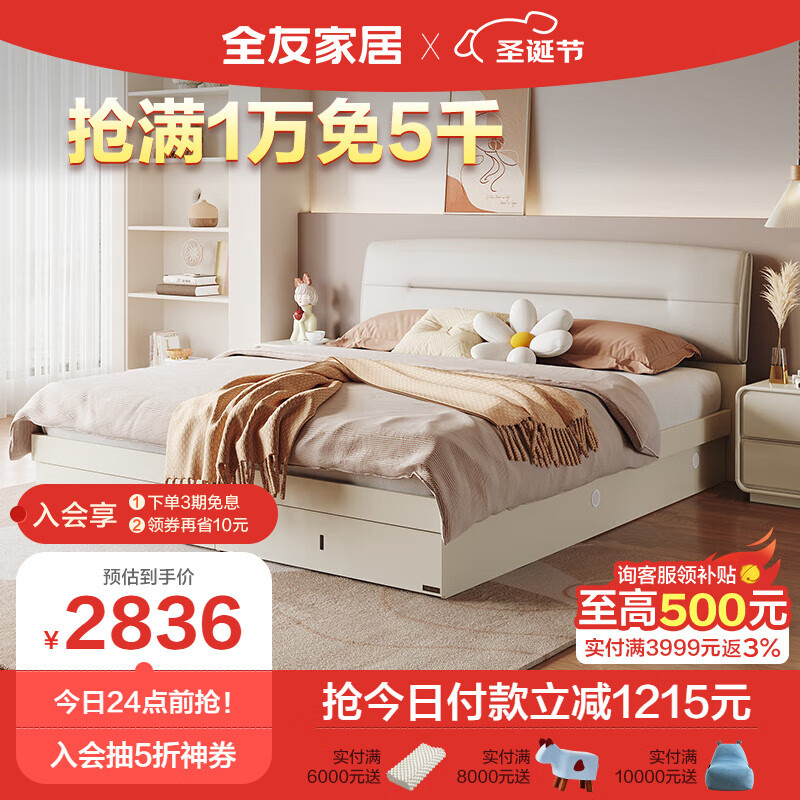 全友家居 床肤感科技布高箱储物床双人床1.8x2米卧室软靠大床DG10001价格:4051.00元!