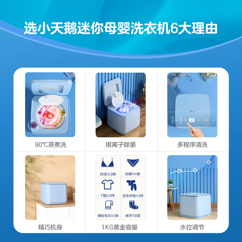 小天鹅(LittleSwan)内衣裤迷你洗衣机 小型母婴儿童袜子 高温蒸煮除螨除菌1公斤波轮全自动冰盐蓝TNB10-01Y价格:1299.00元!