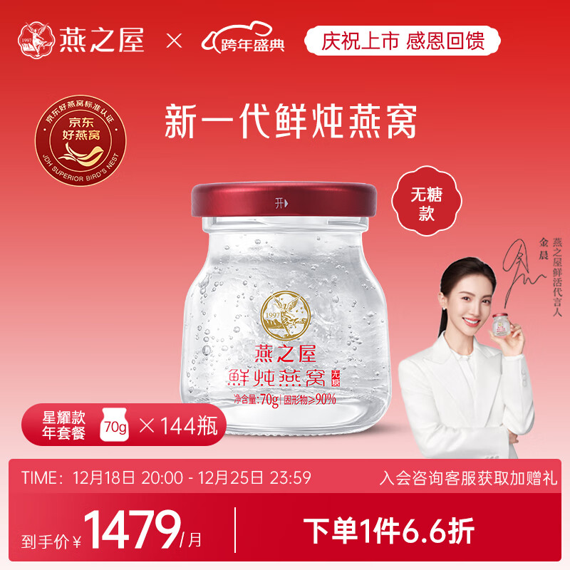 燕之屋鲜炖燕窝 无糖冰袋款年套餐 70gx3瓶x48盒 每6天发2盒 零糖燕窝孕产妇滋补品营养品价格:27792.00元!