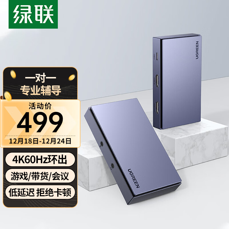 绿联 HDMI高清视频采集卡4K60Hz环出 适用Switch/PS5手机笔记本电脑主机相机摄像机抖音会议游戏直播采集录制价格:499.00元!