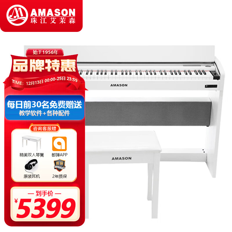 艾茉森(Amason) 珠江钢琴 考级电钢琴88键重锤数码电子钢琴高端手感F13价格:6299.00元!