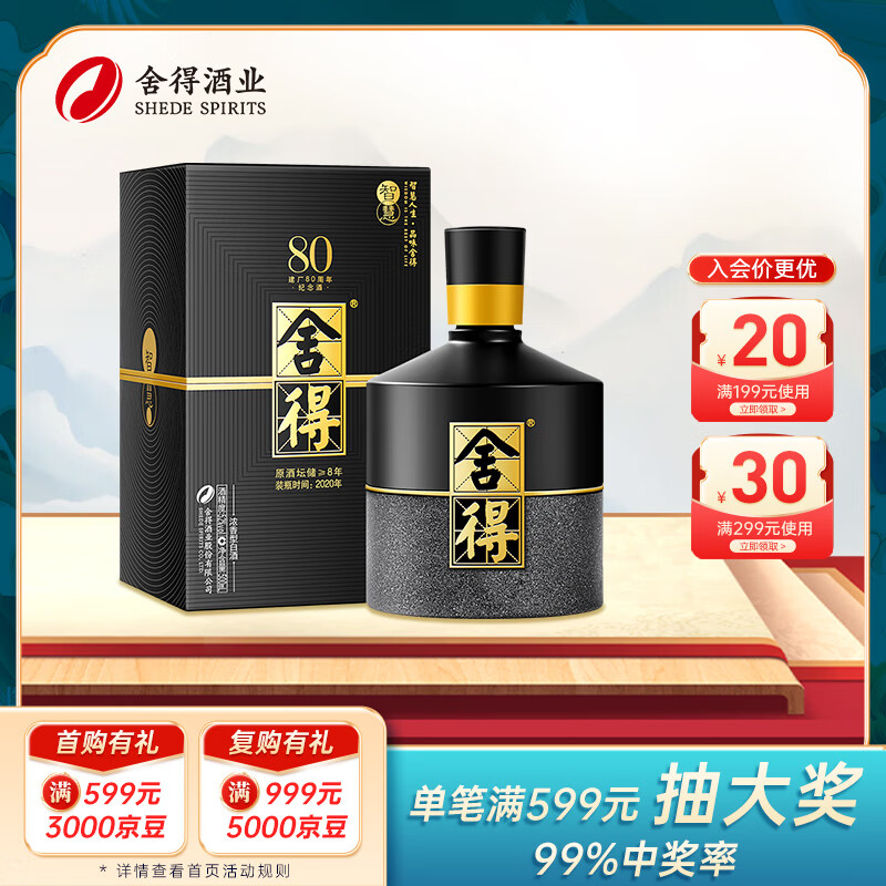 舍得智慧舍得 建厂80周年 浓香型白酒 52度 500ml 单瓶装价格:638.00元!