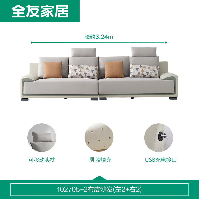 全友家居 沙发现代简约科技布沙发充电功能小户型客厅沙发座具102705价格:4412.00元!