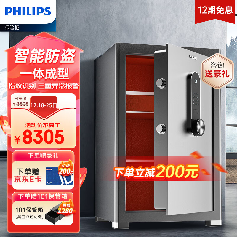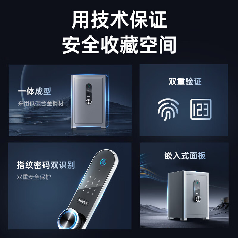 飞利浦保险柜家用办公 指纹密码双识别 3C新国标认证一体成型可入墙保险箱SBX601高78CM(星空灰)价格:8305.10元!