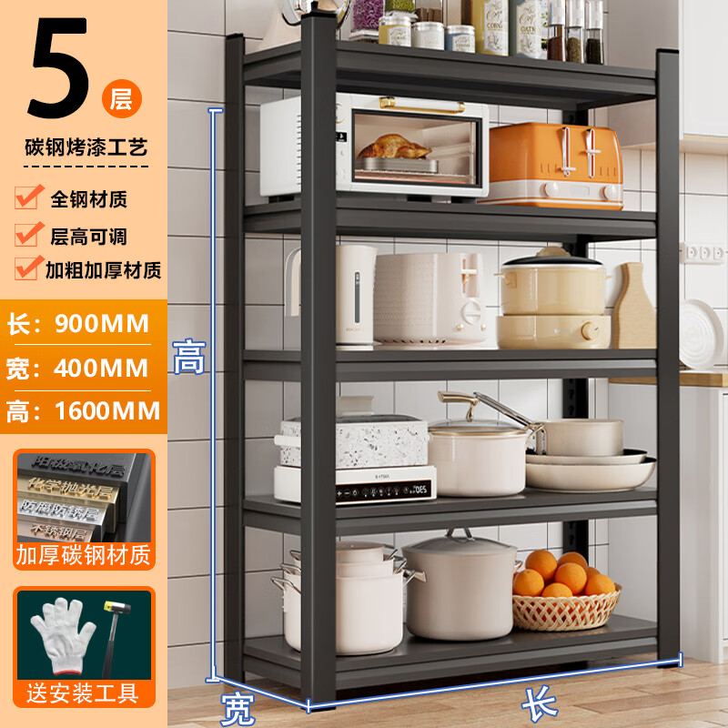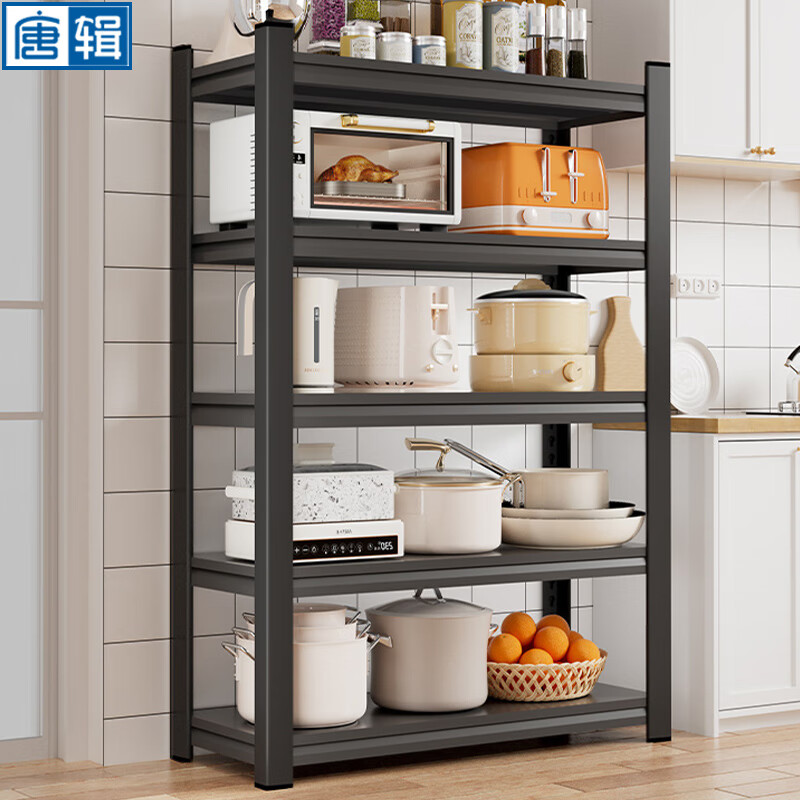 唐辑厨房置物架落地多层货架储物架微波炉收纳架黑色五层 90*40*160价格:419.00元!