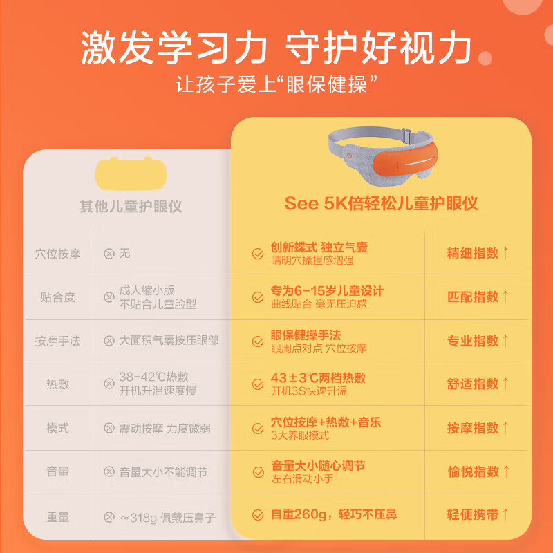 3、买来给孩子用的,我试用了一下,发现也挺适合我的,于是我就和孩子一起用了。说实话,我和孩子都更喜欢睡眠功能,只是加热,热敷,没有按摩,热热的让眼睛很舒服,按摩功能也不错。