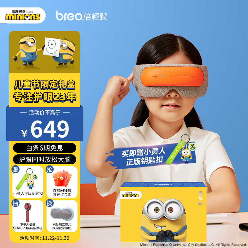 倍轻松(breo)眼部按摩仪器See5K小黄人大眼萌联名礼盒 学生儿童护眼仪 按摩热敷眼罩眼睛按摩仪 易烊千玺代言价格:709.00元!