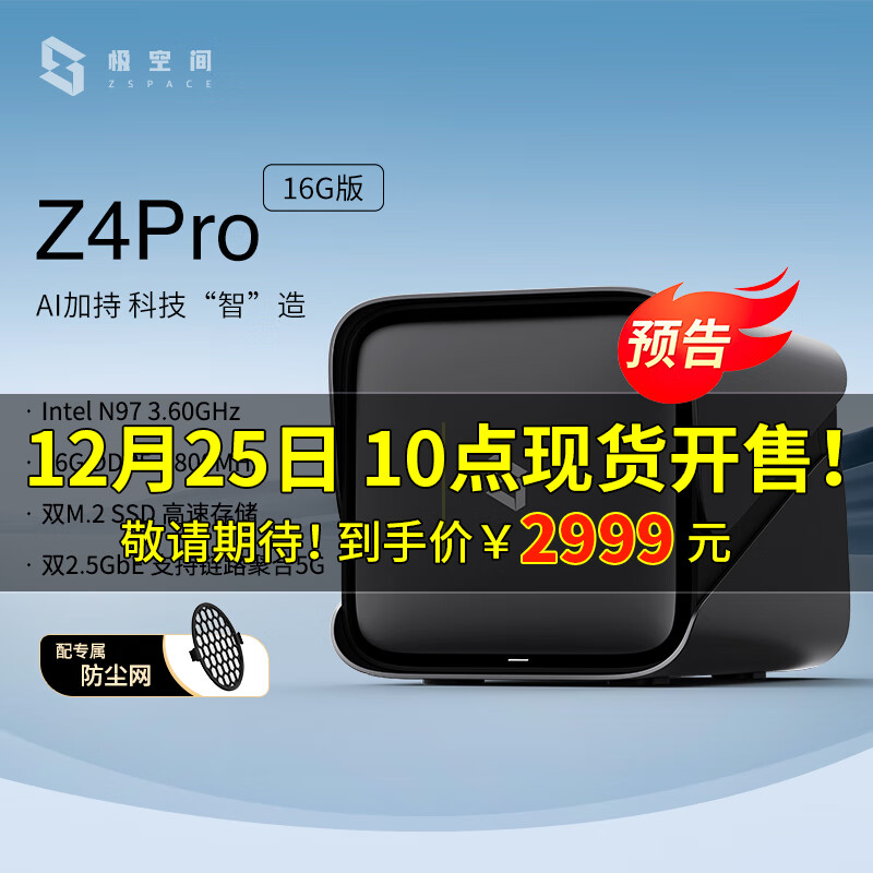 极空间私有云Z4Pro 16G版四盘位Nas网络存储服务器家庭个人云网盘相册备份电脑文件同步【无内置硬盘】钛金灰价格:3099.00元!