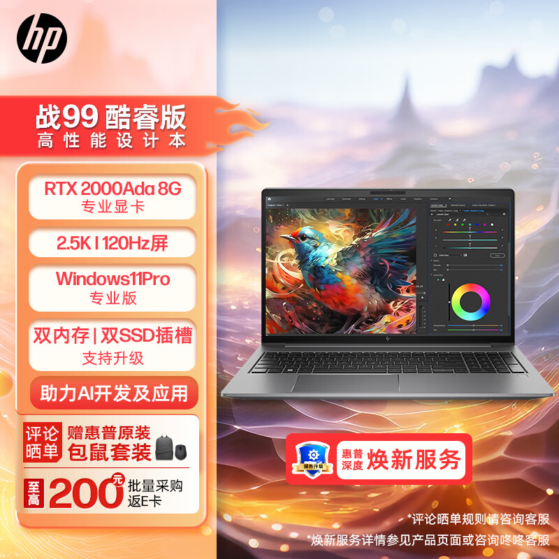 惠普(HP)战99 23款全新15.6英寸高性能笔记本电脑设计师本工作站?i9-13900H 64G 4T RTX2000Ada 2.5K屏Winpro价格:23999.00元!