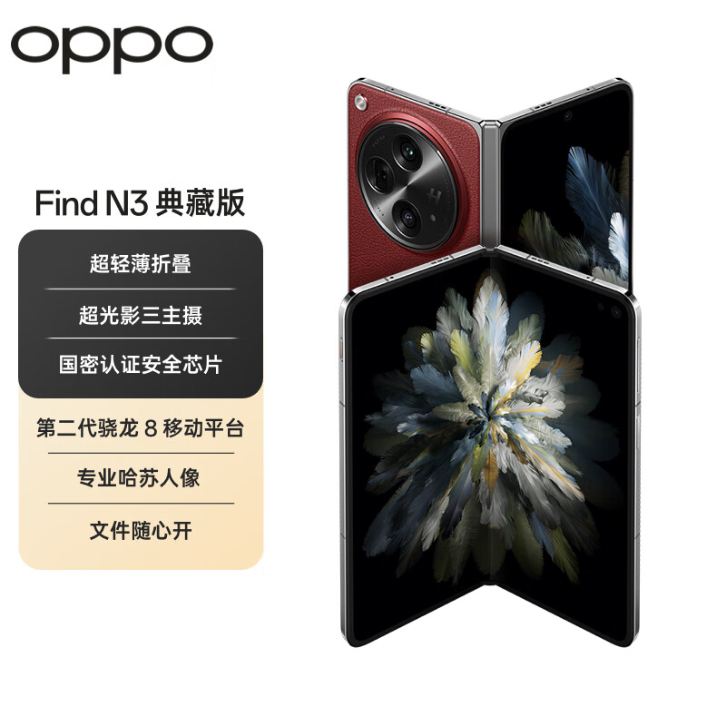 OPPO Find N3 典藏版 16GB+1TB 赤壁丹霞 超光影三主摄 国密认证芯片 5G 折叠屏手机【1年延保套装】价格:13048.00元!
