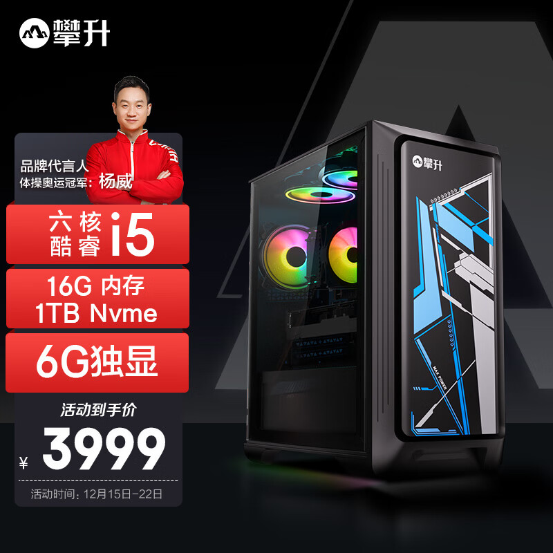 攀升 战神2 酷睿i5设计师电竞游戏台式电脑主机(12代i5-12400F 16G 1TB SSD 6G独显 RGB侧透 WiFi6)价格:3999.00元!