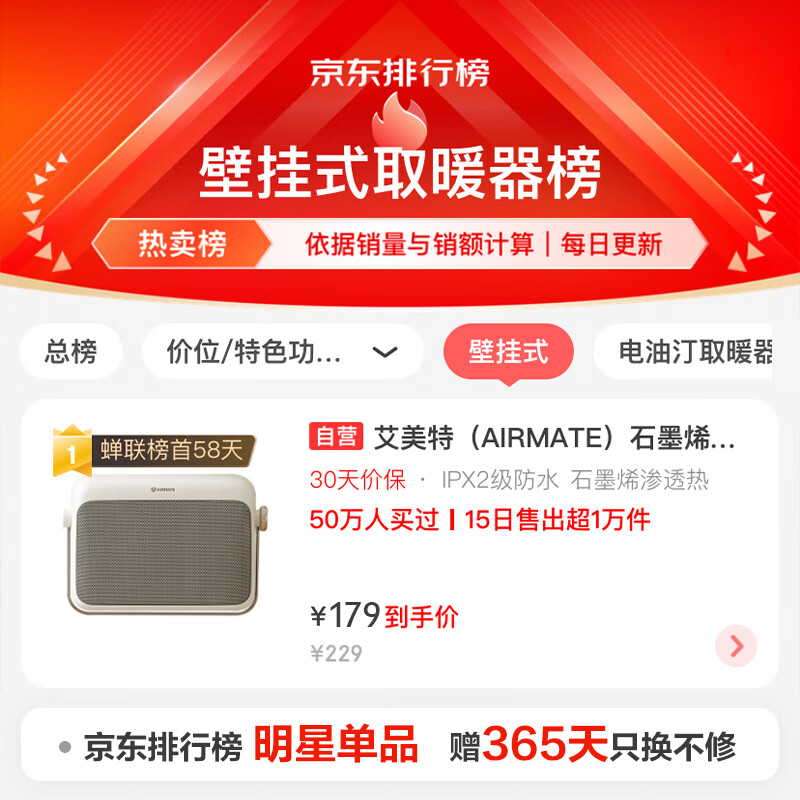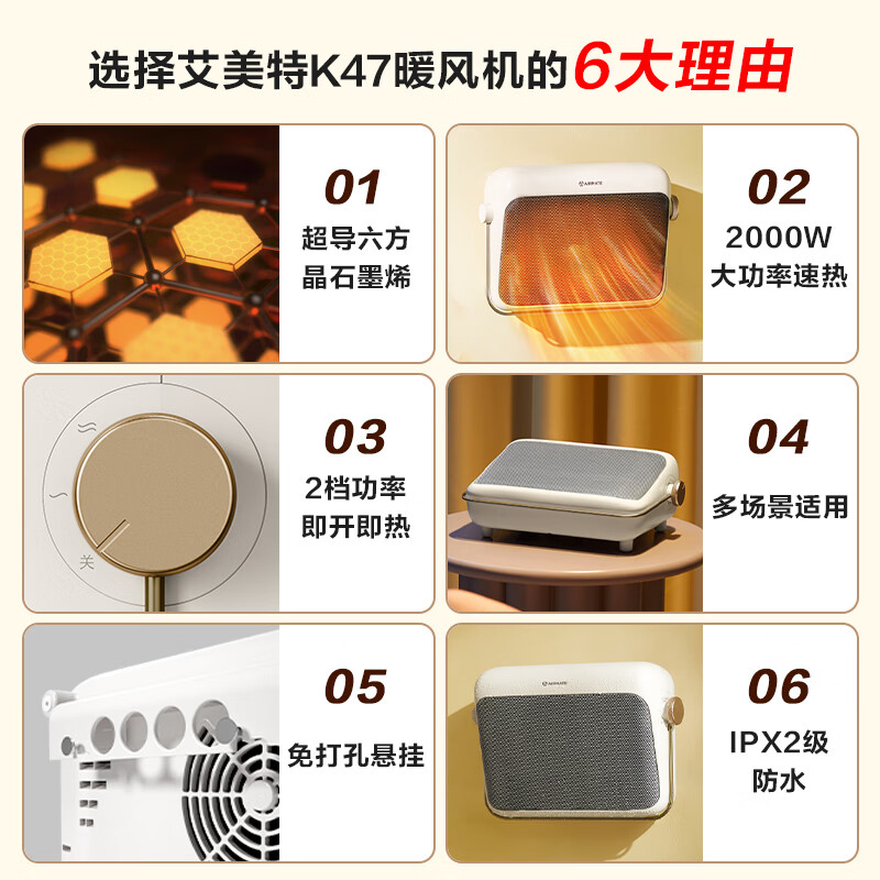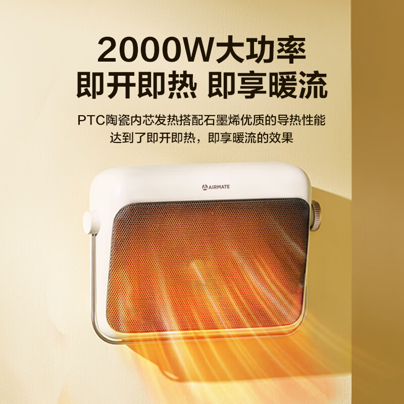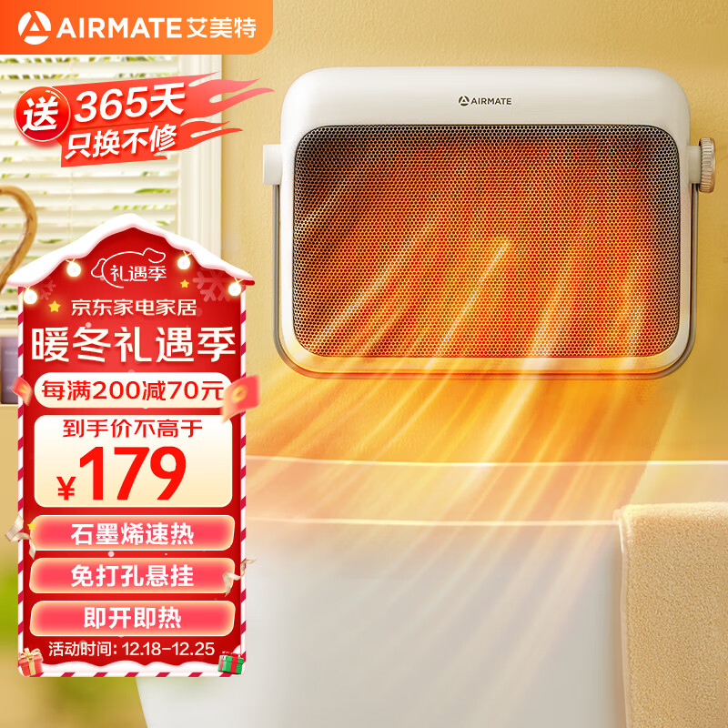 艾美特(AIRMATE)石墨烯暖风机/取暖器/电暖器/电暖气片家用/电热风扇 浴霸浴室卫生间壁挂防水速热暖风机 HP20-K47价格:249.00元!