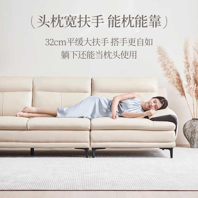 2、沙发很漂亮,简单大气。和家里的装修风格很搭。比实体店的价格便宜了好多。总体购物非常满意。希望可以用的久一点,皮子耐磨性好一点