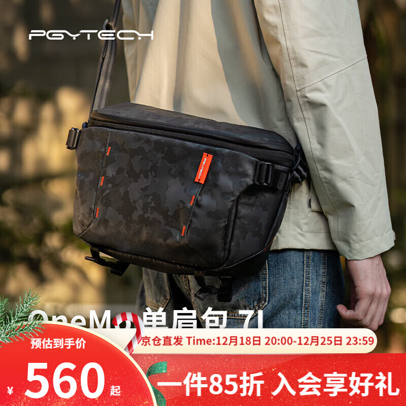 PGYTECH蒲公英单肩包OneMo摄影包单反斜挎包富士尼康佳能相机包稳定器收纳包oneMo Sling单肩包 7L迷彩灰价格:659.00元!