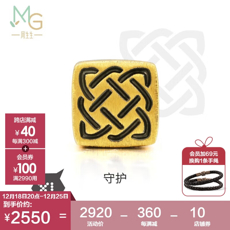 周生生圣诞礼物黄金转运珠CharmeXL守护男女情侣足金珠子 不含手链绳86523C定价价格:2920.00元!