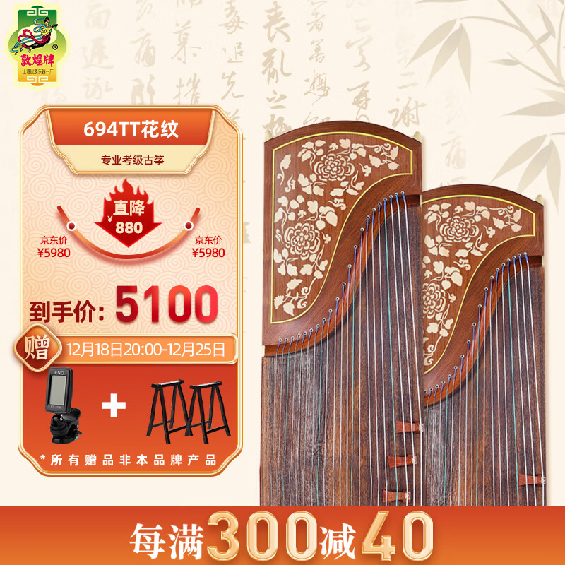 敦煌牌考级古筝民族乐器 特氏古夷苏木古筝694TT 天真元韵 花纹图案价格:5860.40元!