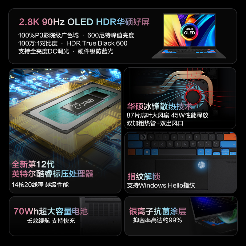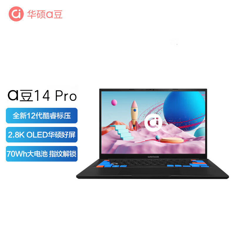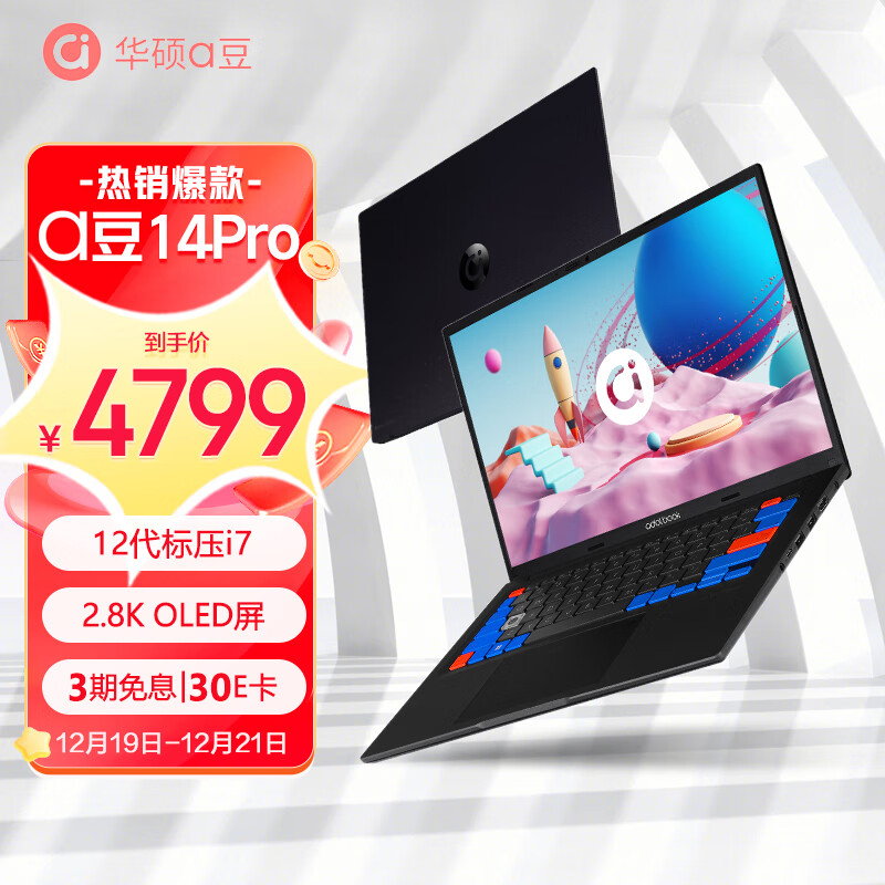 华硕a豆14 Pro 12代酷睿i7标压 2.8K 90Hz OLED屏 14英寸高性能办公轻薄笔记本电脑(12核i7-12700H 16G 512G)黑价格:4799.00元!
