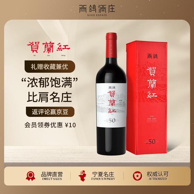 贺兰红西鸽N50老藤干红葡萄酒750ml单瓶礼盒装 宁夏贺兰山红酒价格:358.00元!