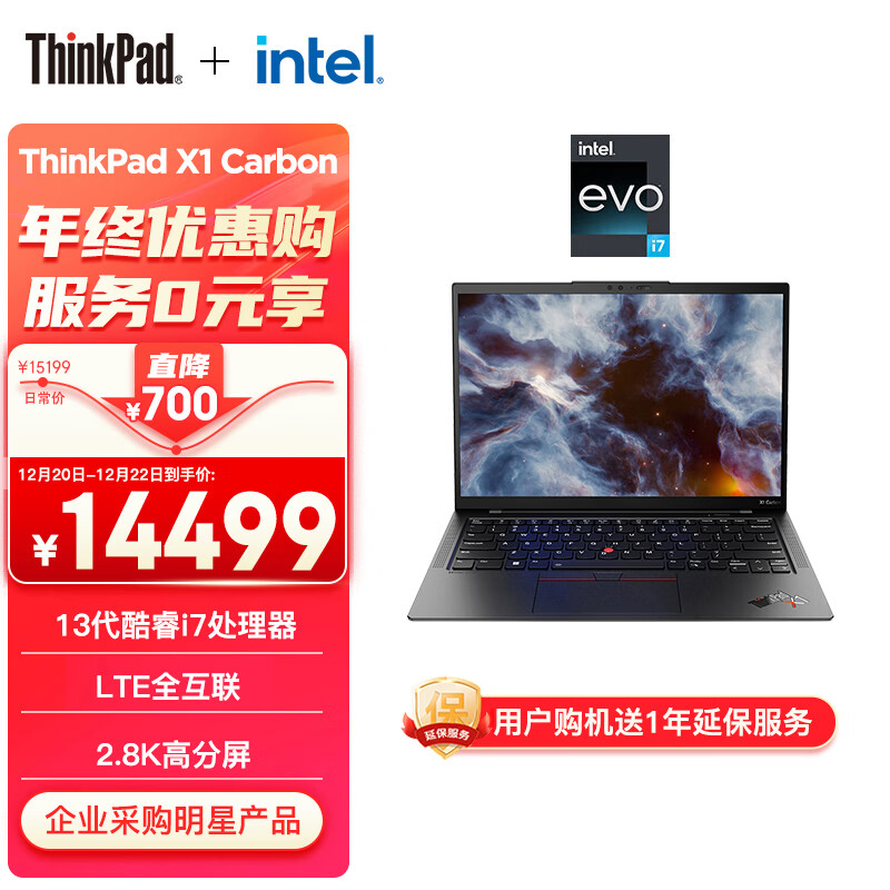 ThinkPad 联想 X1 Carbon 2023款 英特尔Evo 14英寸笔记本(13代i7-1360P 32G 1T SSD 4G版 2.8K)商务办公学生本价格:14499.00元!