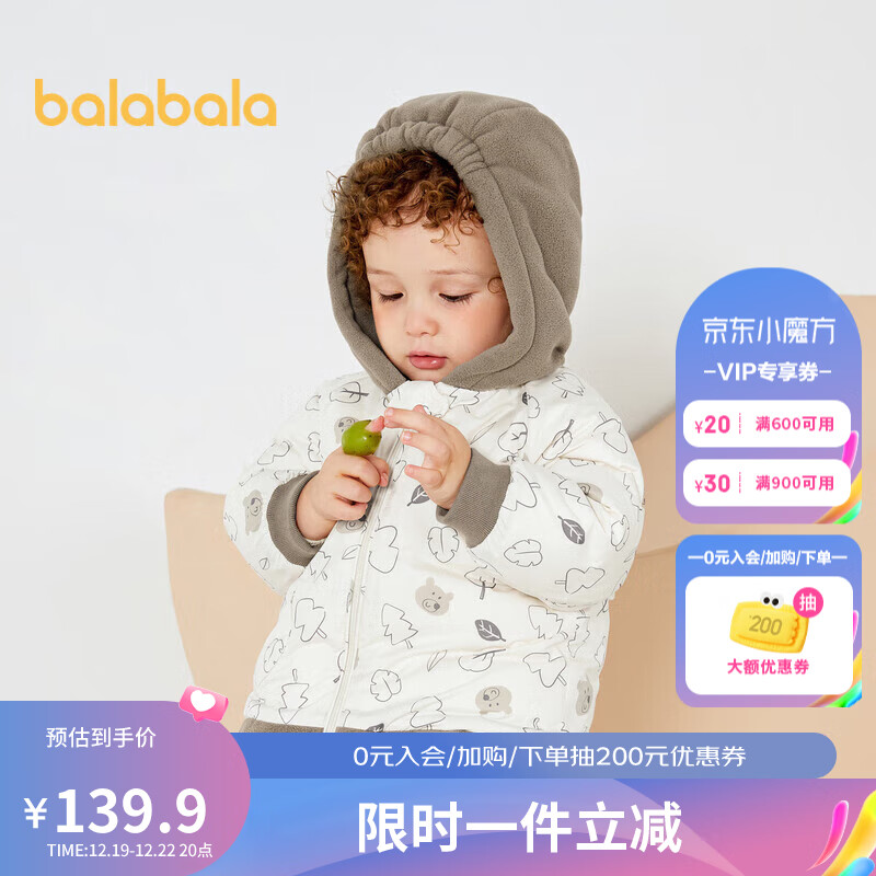 巴拉巴拉宝宝羽绒服男童童装女童冬季外套拼接帽子萌208422107233价格:209.90元!