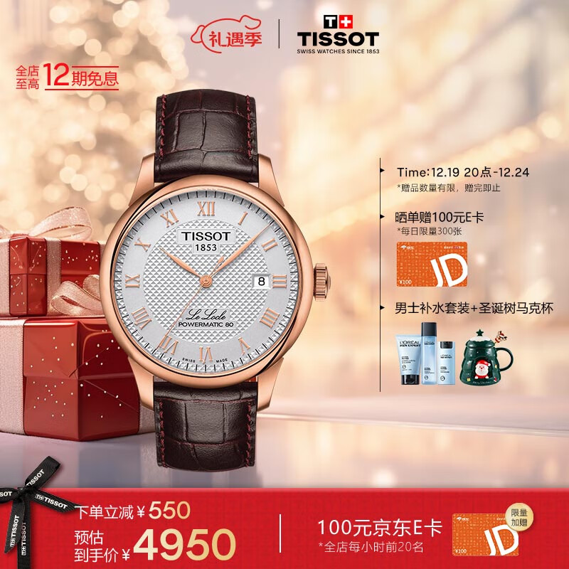 天梭(TISSOT)瑞士手表 力洛克系列机械男表 圣诞礼物送男友T006.407.36.033.00价格:5500.00元!