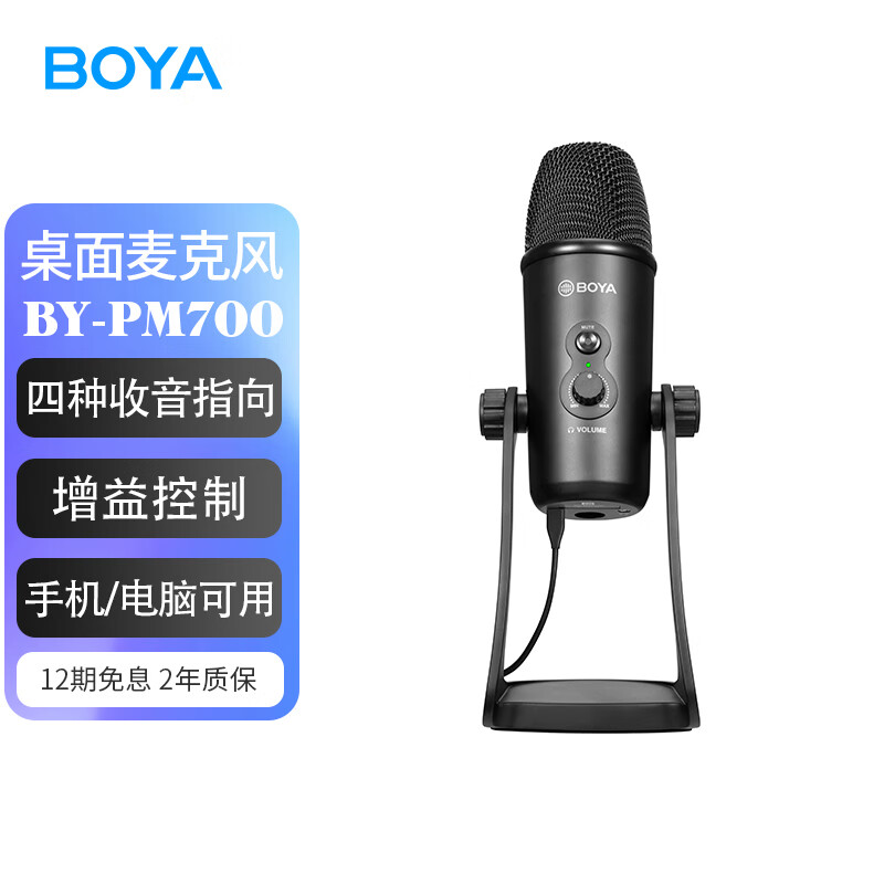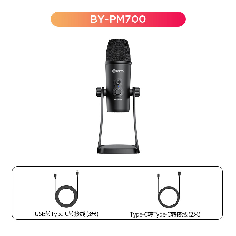 BOYA博雅 麦克风 BY-PM700电脑USB/手机Type-C双接口指向性电容麦克风 直播K歌配音录制收录音立体声专业话筒价格:600.00元!