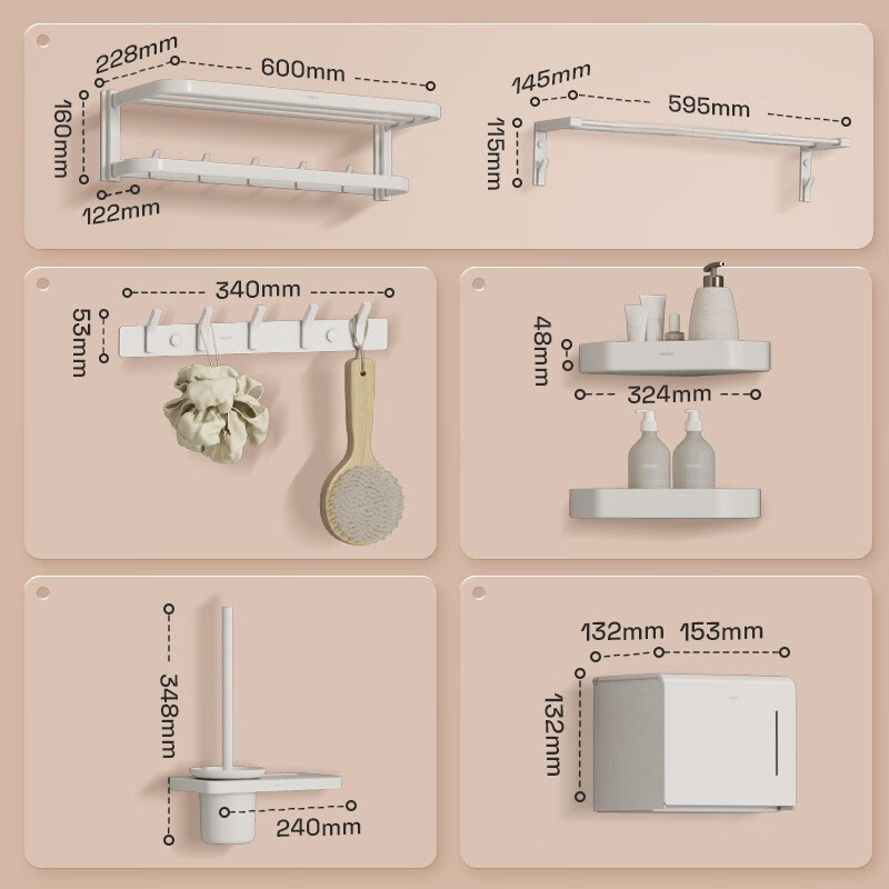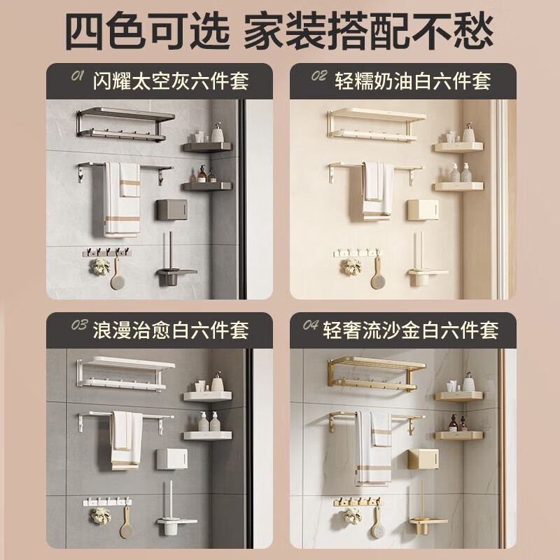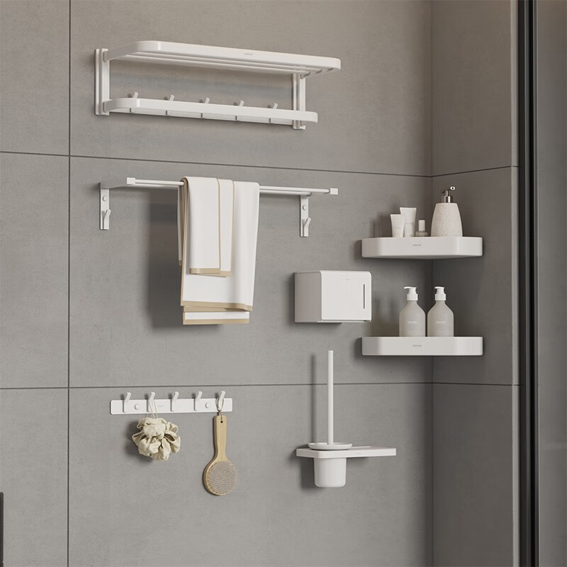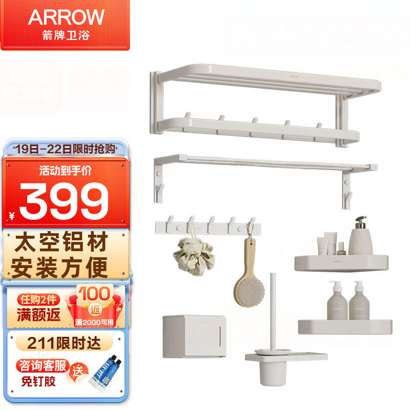 箭牌(ARROW)毛巾架太空铝免打孔卫生间浴室厕所洗手间浴巾架挂件置物架 【哑白】加宽扁管太空铝六件套价格:449.00元!
