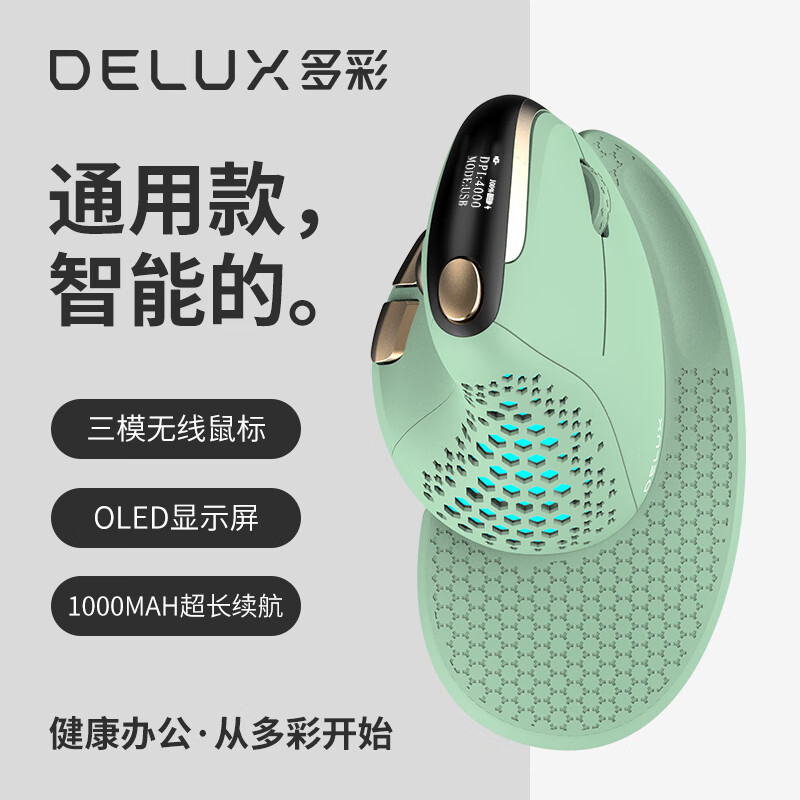 多彩(DeLUX)M618XS垂直鼠标 人体工学鼠标 无线蓝牙有线三模鼠标 电脑笔记本办公鼠标 可充电 LED屏 绿色价格:279.00元!